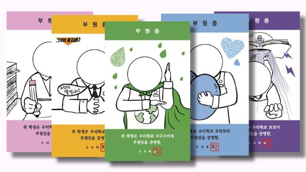 우리학교 부스를 즐기는 진정한 방법! 바로, 동아리 부원이 되는 것이죠.(왠지 모를 소속감!) 우학제에 참여한 다섯 개의 동아리 중 가장 마음에 드는 곳에 가입한 자기의 모습을 상상하며 '부원증'을 꾸며 보세요. 가끔 부원증을 들여다 보며, 부산국제아동도서전 우학제의 추억을 떠올려 보는 것도 좋겠죠?